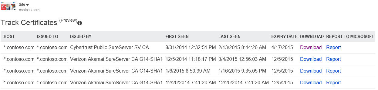 We are seeing more occurrences of mis-issued certificates, such as the recent problem with CNNIC. It is recommended that domain owners use Certificate Reputation to monitor their domains. In the future, we expect that Microsoft will upgrade the service to provide email notification when a new certificate has been found.